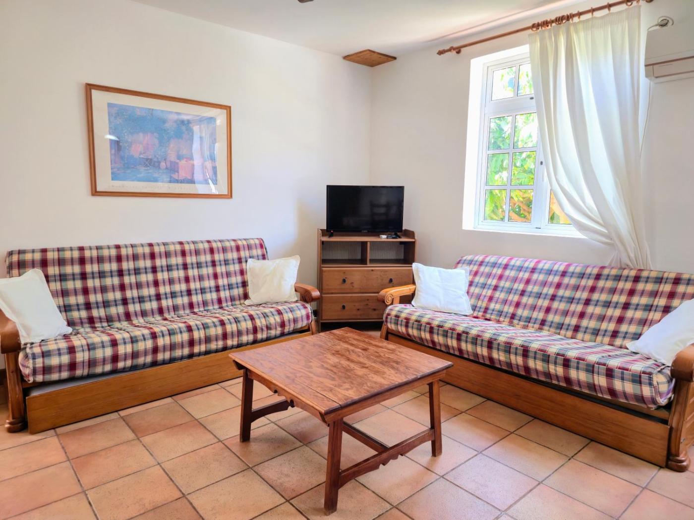 Opening onto a terrace with garden views, the air-conditioned holiday home consists of 1 bedroom and a fully equipped kitchen. A flat-screen TV is provided.
